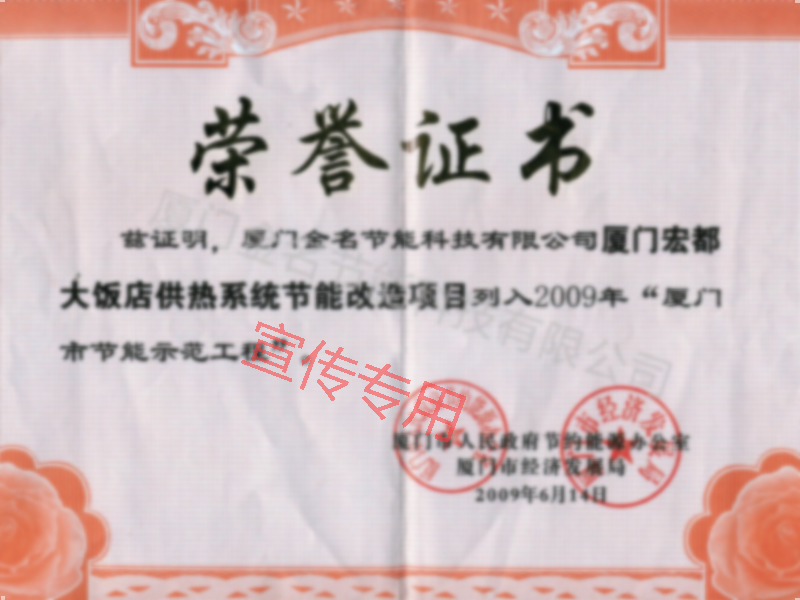 廈門宏都大飯店-廈門市節(jié)能示范工程(2009年)
