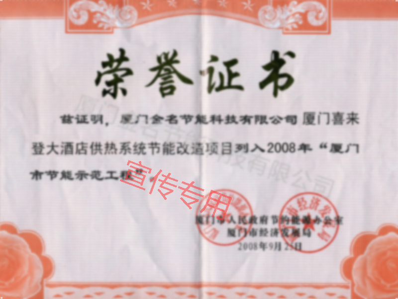 廈門喜來登大酒店-廈門市節(jié)能示范工程(2008年)
